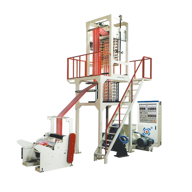 It is used for blowing LDPE,HDPE color striped plastic film,etc.Which are widely used for packing food,fruit,garments,textile,daily necessities and other civil and industrial products.The cylinder and the screw stem of model SJ-45D×2 extruder are made of high-quality alloy steel with optimum hardness and strong corrosion resistance after precision finishing and nitrogen treatment.600 auxiliary machine can be freely adjusted within the limits of 600mm according to the technological requirement of different materials,and has been fitted with a plug in plate mechanism for making vest bag,.The coiling unit adopts torque motor to keep proper tension and make rolling even and roll-changing easy.And not printed will be able to achieve the color effect.